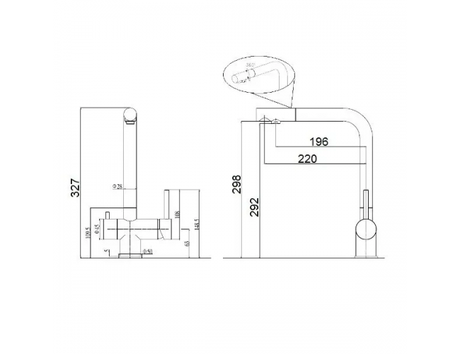 - Pipă înaltă în formă de L, cu vârf rotativ
