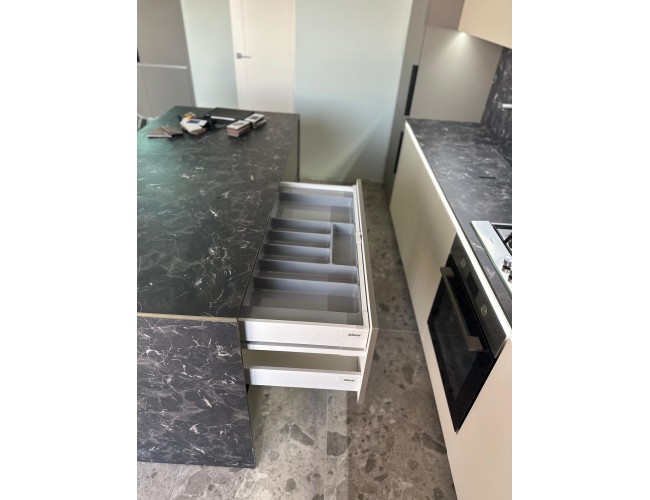 - feronerie și accesorii moderne (soft-close, sertare rezistente, mecanisme silențioase),