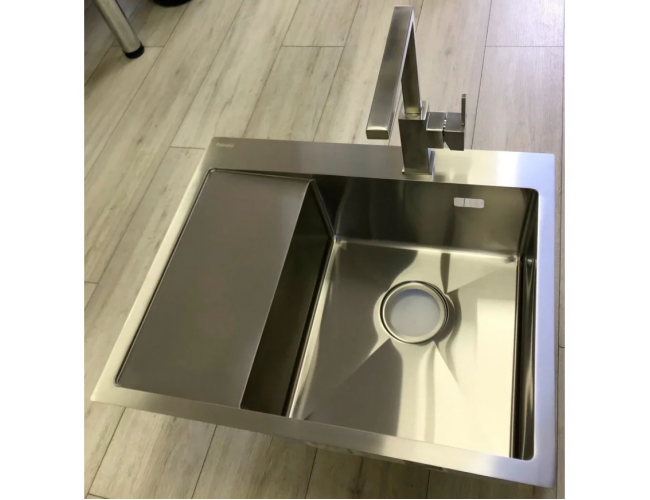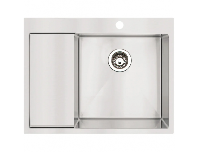 Chiuvetă de bucătărie încastrată din oțel inoxidabil, cu o cuvă și un picurător, finisată prin lustruire mată (Brush).