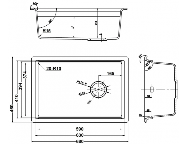 - Dimensiune chiuvetă: 680×450 mm