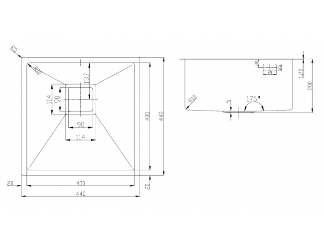 - Marginile pereților cuvei realizate cu un unghi de rază de 10 mm