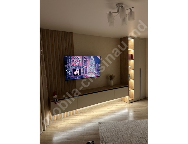 Mobilă pentru living modern, realizată la comandă, cu design contemporan și funcționalitate optimă. Setul este conceput pentru a valorifica eficient spațiul și a oferi un aspect elegant livingului.