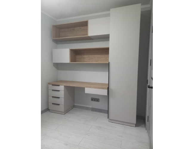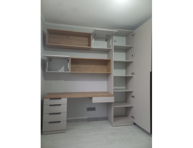 Габариты (высота × ширина × глубина) 2350 × 2000 × 550 мм.Стол изготовлен из меламиновой ДСП или крашеного МДФ.