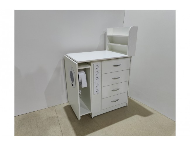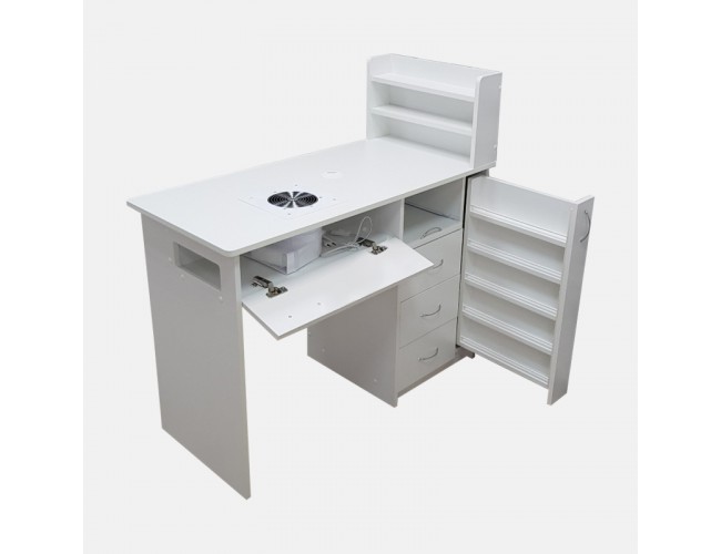Модель разработана для эффективной ежедневной работы мастера. Она оснащена просторной столешницей, удобными ящиками для хранения инструментов и расходных материалов, а также дополнительными полками для размещения необходимых рабочих средств. Такой стол отлично подойдет для салонов, которые ценят комфорт, функциональность и стильный внешний вид мебели.