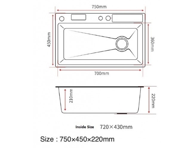 Глубина чаши: 220 мм