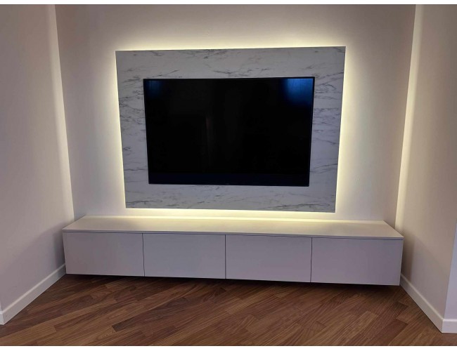 Подвесные тумбы: такие модели не ставятся на пол, а подвешиваются на стену при помощи специальных стеновых креплений. Самый важный нюанс их выбора – качество фурнитуры, от него будет зависеть срок службы мебели и максимальная нагрузка на нее. В любом случае подвесную тумбу лучше не перегружать вещами, а для телевизора стоит тоже приобрести стеновое крепление. Некоторые модели такого типа снабжаются дополнительной внутренней подсветкой, которая усиливает эффект «парения» тумбы над полом.
