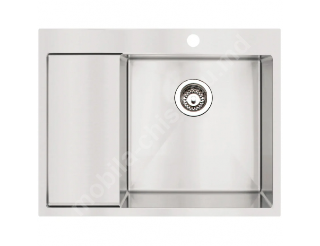 Врезная кухонная мойка из нержавеющей стали с одной чашей и крылом, выполненная в матовой полировке (Brush).
