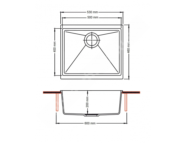 Раковина гранитная U-106 песочный 495 x 610 x 190 мм