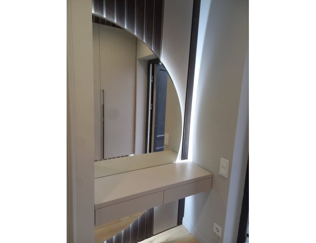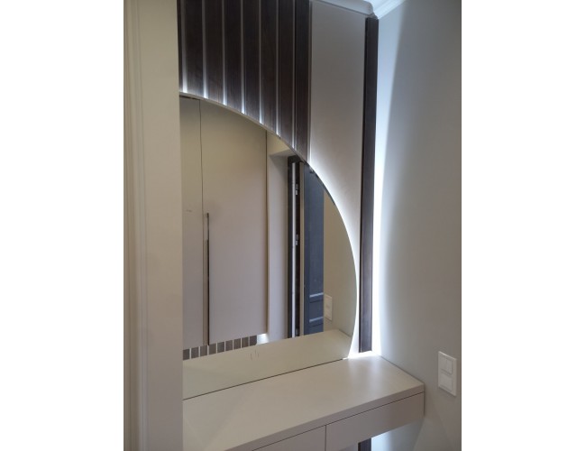 Современная консоль для прихожей с полукруглым зеркалом и LED-подсветкой T-50