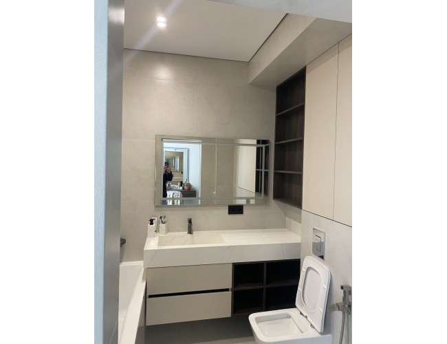 Мебель для ванной с LED-зеркалом T-105 — это решение для современного, аккуратного и удобного в использовании пространства. Мы производим мебель для ванной на заказ в Кишинёве, адаптированную точно под размеры вашего помещения: расположение коммуникаций, желаемую высоту, количество шкафов, зоны хранения и интеграцию зеркала с подсветкой.