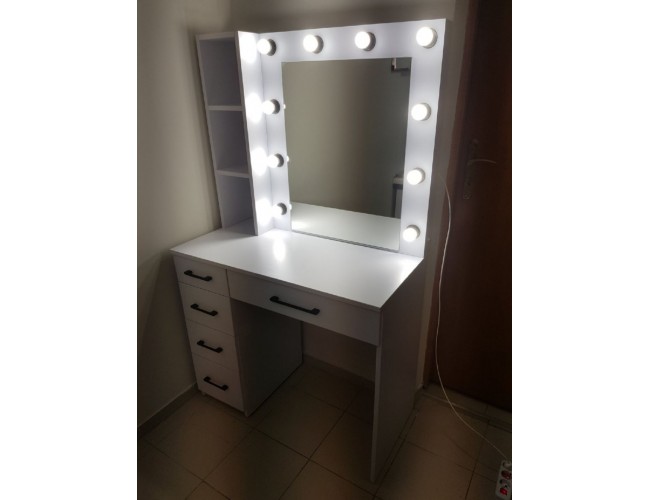 - Функциональные выдвижные ящики: удобная организация хранения косметики и аксессуаров.