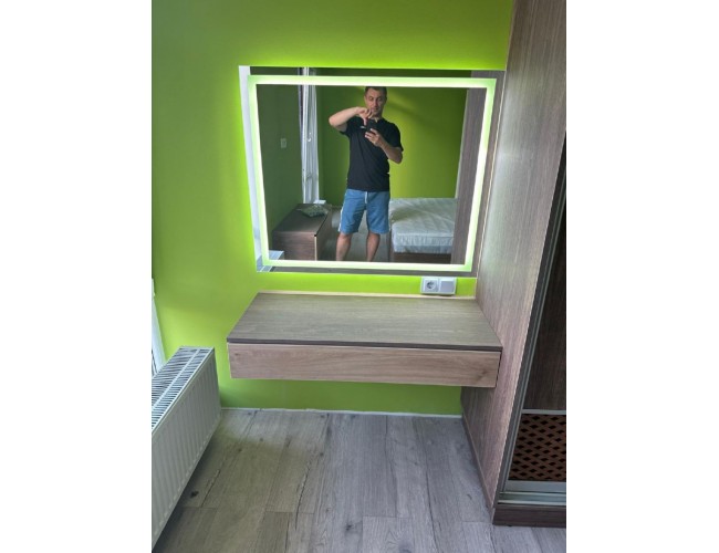 Отправьте нам сообщение, указав: 1) размеры (Д × Ш × В), 2) желаемый стиль (современный / классический / неоклассический), 3) цвет, 4) простое или светодиодное зеркало, 5) город (Кышинау / другой район), 6) фотографию места установки.
