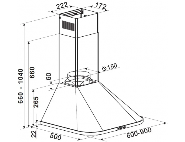 - Диаметр воздуховода: рекомендовано 150 мм, минимум 120 мм