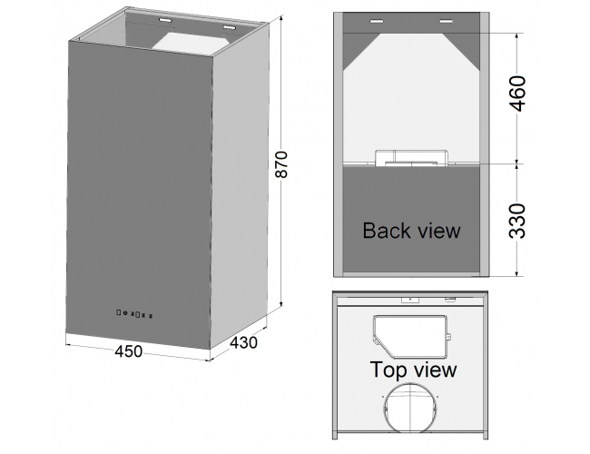 - Диаметр воздуховода: рекомендовано 150 мм, минимум 120 мм