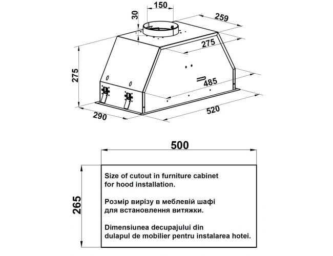 - Диаметр воздуховода: рекомендовано 150 мм, минимум 120 мм